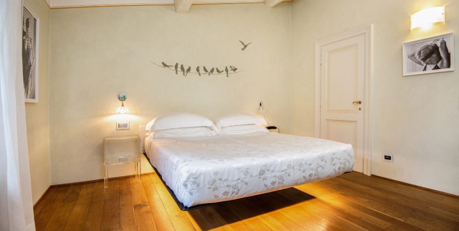 La grande camera da letto vi accoglierà con un ampio letto sospeso Lago Design. Per questa Suite è stato scelto “Fluttua” un bellissimo letto dal design moderno che vi darà la sensazione di dormire sospesi galleggiando nell’aria. Un grande cabina armadio vi consentirà di apporre i vostri abiti in tutta comodità.