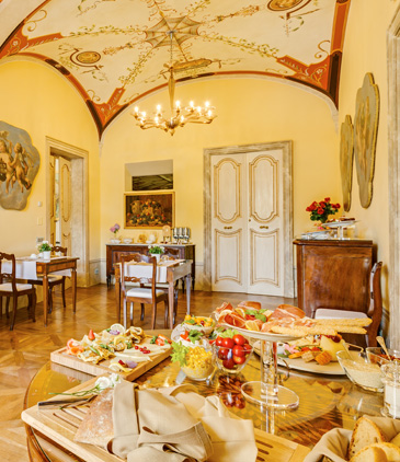 The rich breakfast of local products, will welcome you every morning in the prestigious Sala degli Angeli; if you want to maintain your privacy, you have just ask for the breakfast in your bedroom (service included in the package).