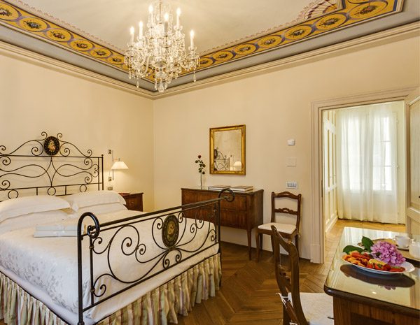 The room then opens inside the ancient tower, and overlooks Via Montanini. It is furnished with a typical eighteenth-century iron “pastoral” bed and with antique furniture.
